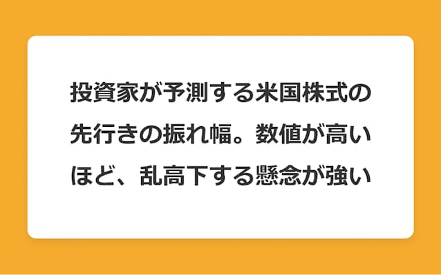③米シカゴ・オプション取引所がデリバティブ(金融派生商品)の一つのオプション取引の価格をもとに算出します。VIXの上昇が株安を招くことがあり、不安定な相場を解説する記事の中でよく登場します。2018年2月には米長期金利の上昇に端を発し、VIXの急激な上昇が株売りを誘う「VIXショック」が発生し、米相場を大きく揺らしました。